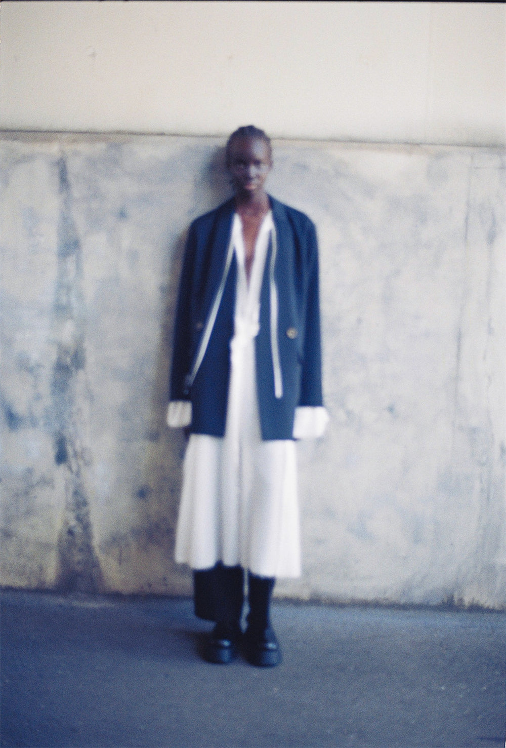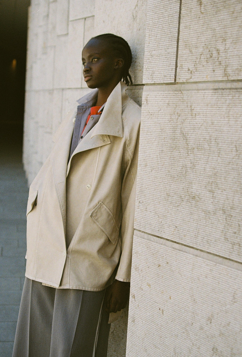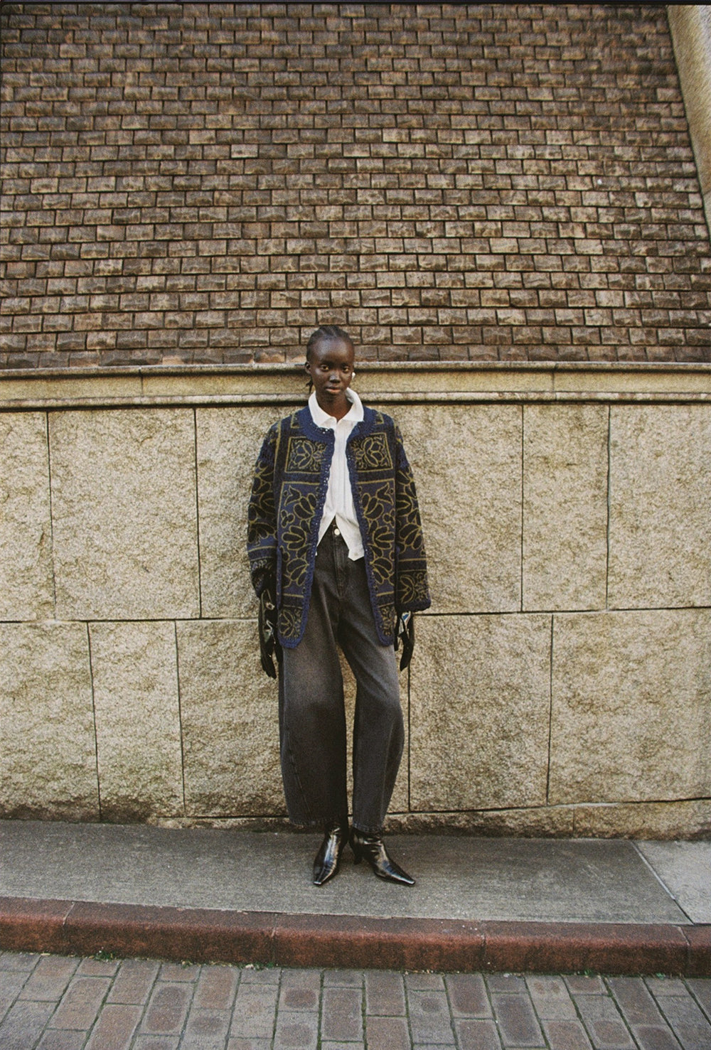 JACKET ¥30,800/LONG TOP ¥19,800/PANTS ¥20,350/LOAFER ¥25,300