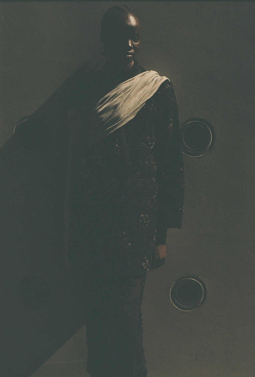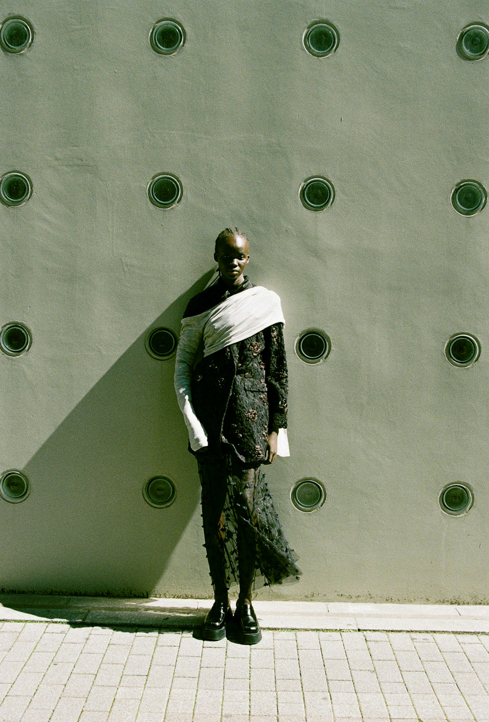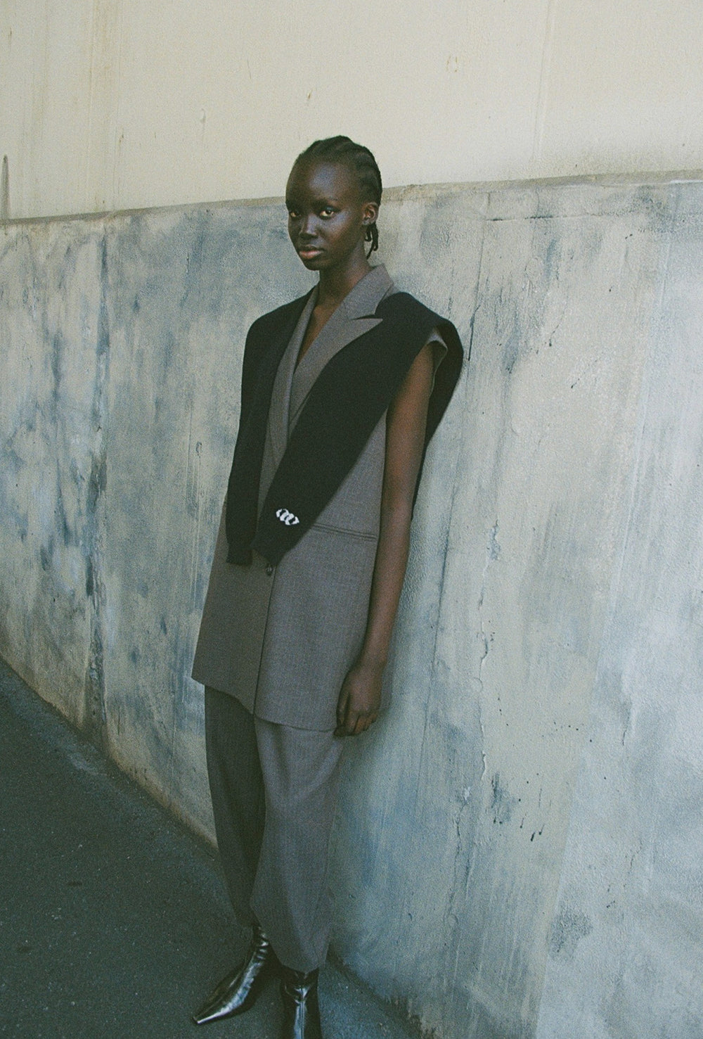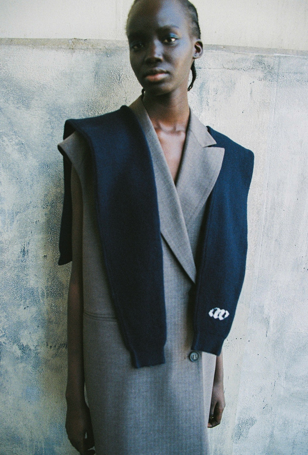 JACKET ¥30,800/LONG TOP ¥19,800/PANTS ¥20,350/LOAFER ¥25,300