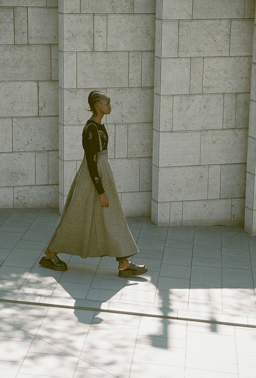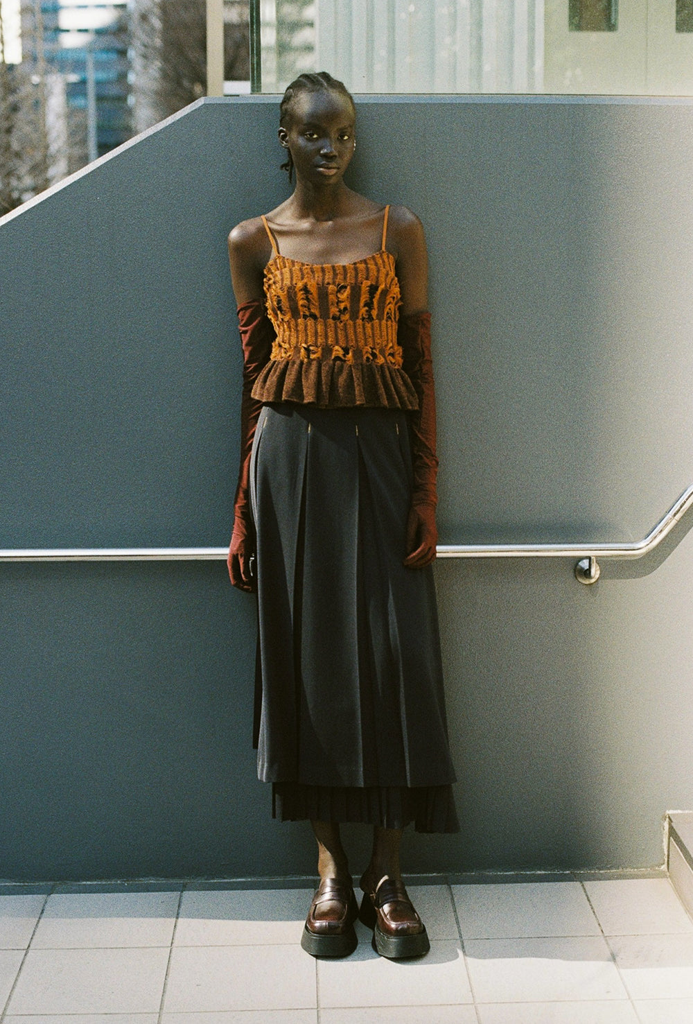 KNIT TOP ¥22,000/SKIRT ¥29,700/LOAFER ¥25,300