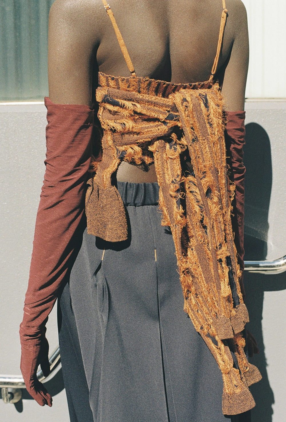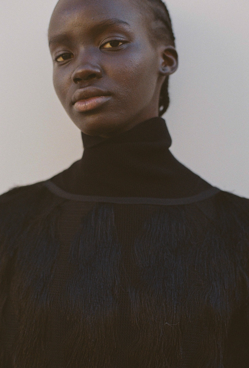 FRINGE TOP ¥20,350/TURTLE KNIT TOP ¥13,200(Sep.)/LOAFER ¥25,300