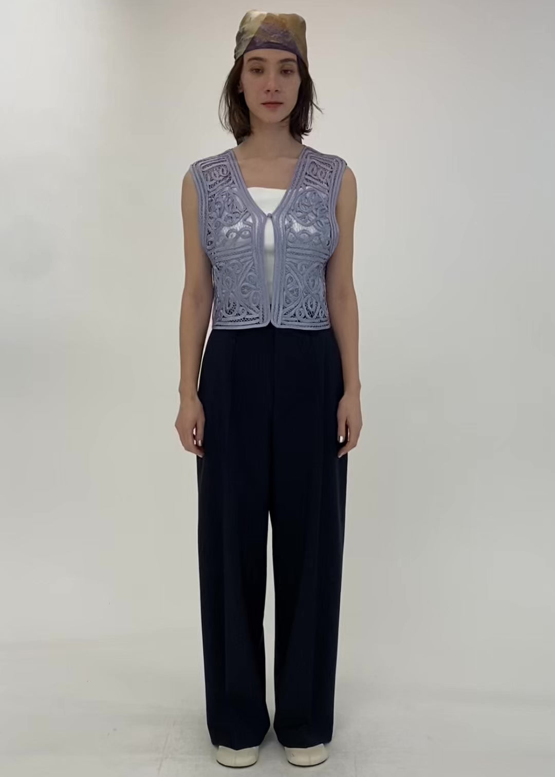オールハンドで仕上げた繊細なバテンレースのベスト。