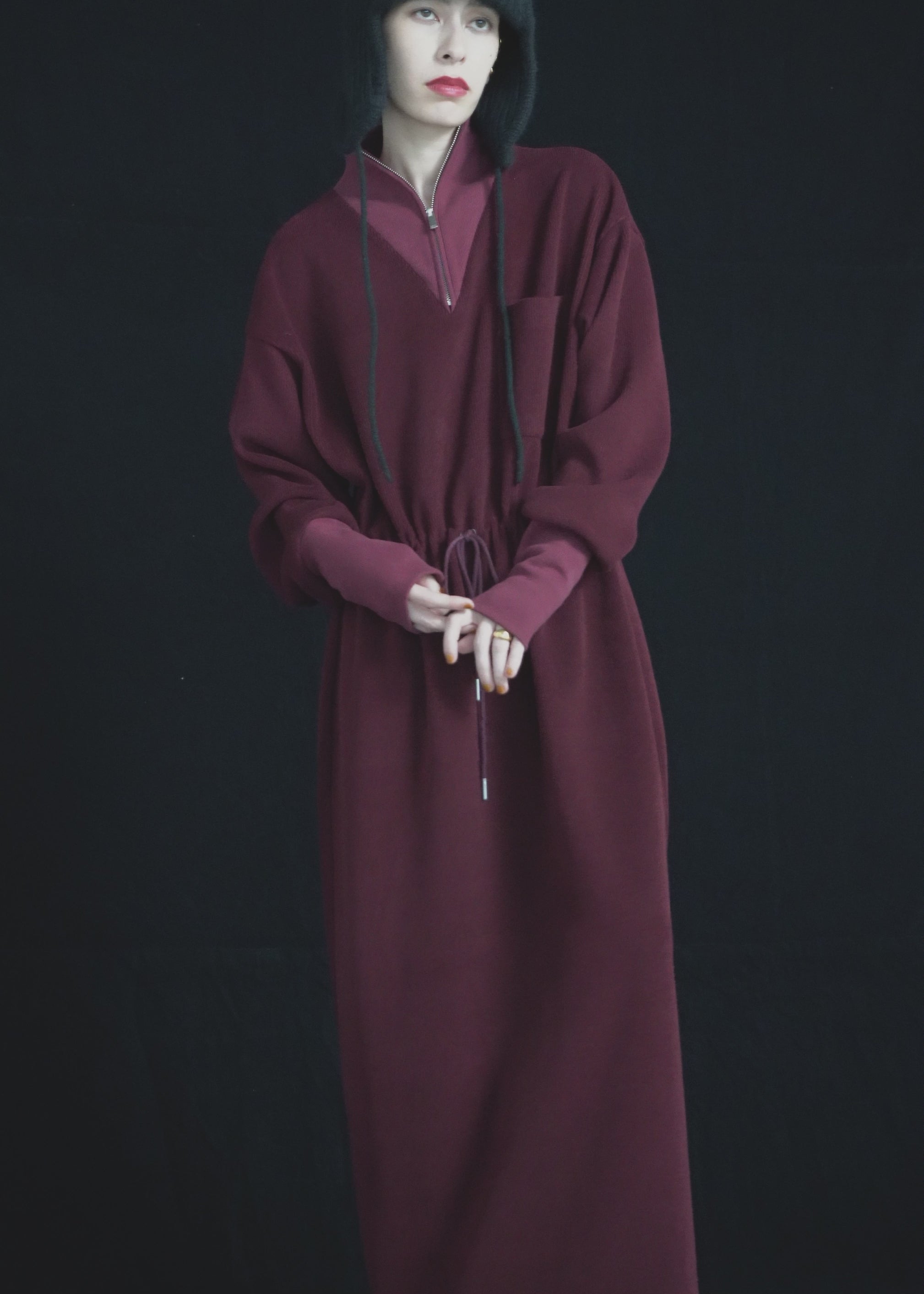 一枚でコーディネートが完成するデザインで、スウェット素材のカジュアルな印象を残しつつもモードな雰囲気でご着用いただける一着です。